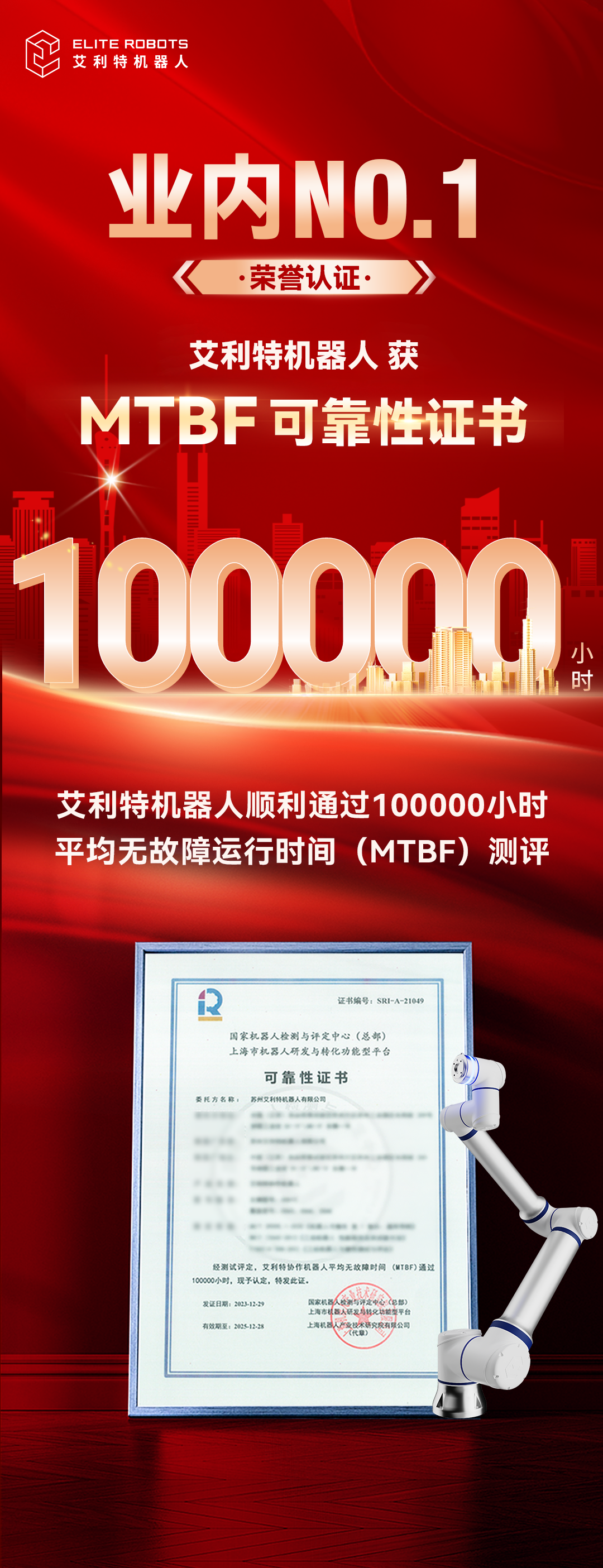 业内首家!AG庄闲机器人通过MTBF 10万小时认证,协作机器人可靠性攀顶新台阶!