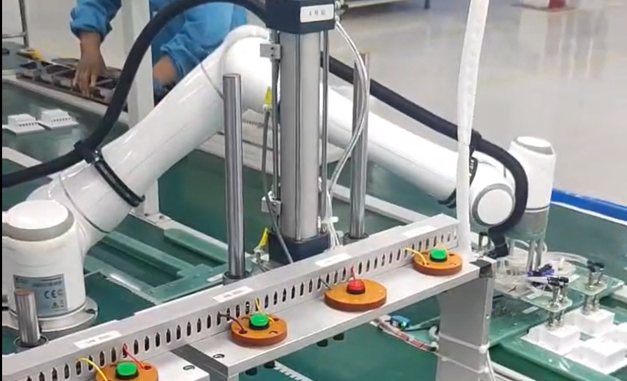 因此,客户希望引入协作机器人来逐步替代人工进行电源开关取放及检测。AG庄闲协作机器人结构紧凑、体积小巧、人机交互安全,成自动化产线改造首选。