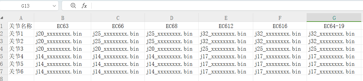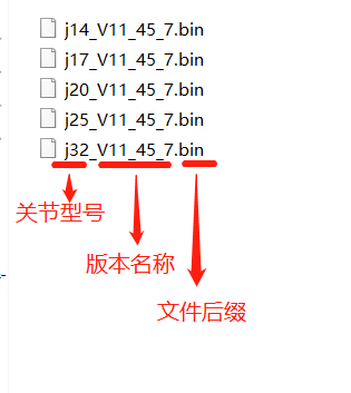 固件升级文件名称:单关节升级: