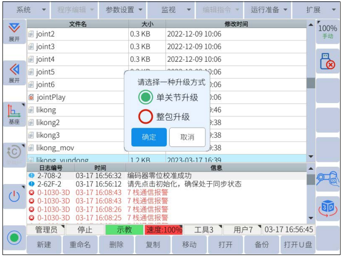 升级方式有两种:单关节升级和整包升级