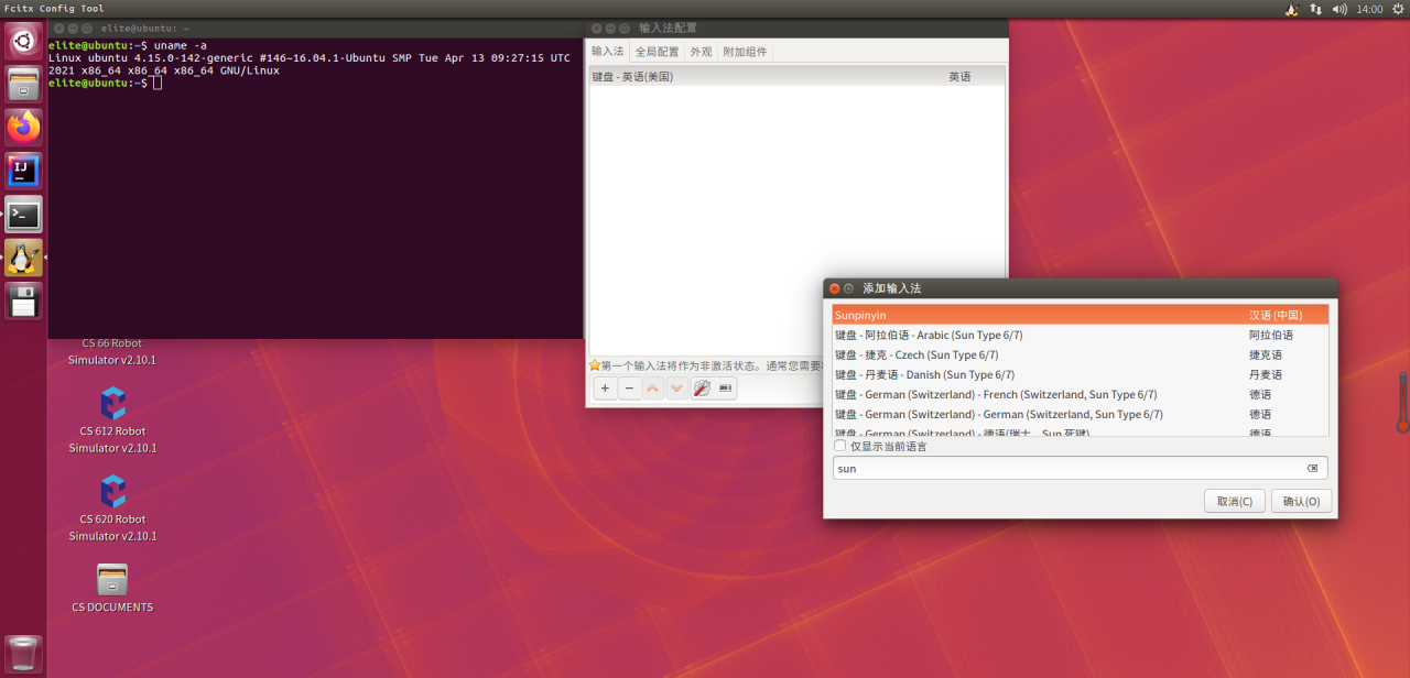 回到“语言支持”窗口,在键盘输入法系统中,选择“fcitx”