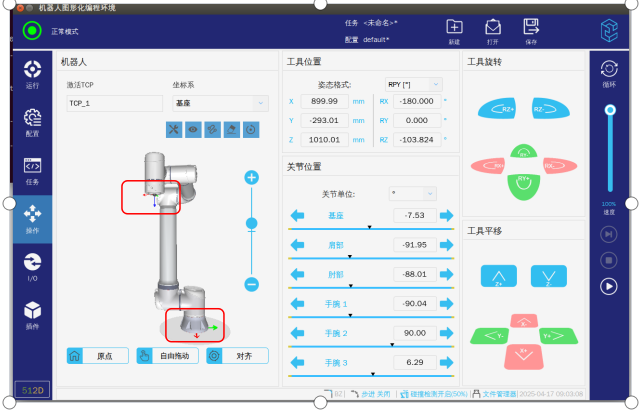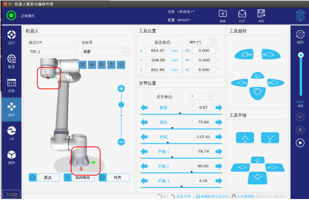 第五步:设定完成之后TCP_1的方向就与基座标系方向一致了。如图-10两个红框所示。