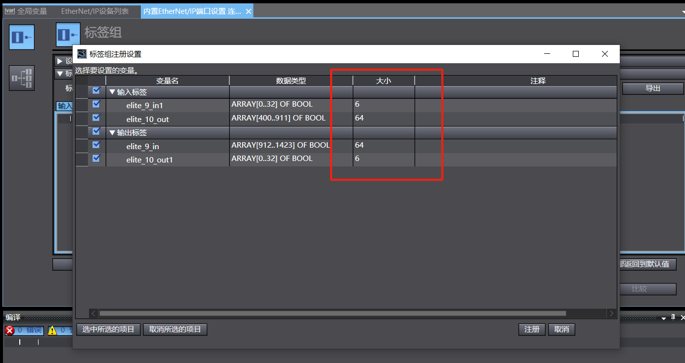 13、 进入内部 EtherNet/IP 端口设置,选择标签组,点击全部注册