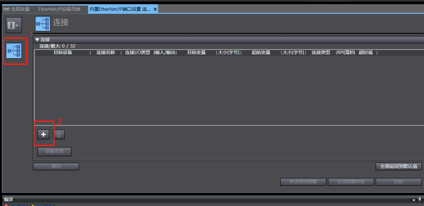 12、 全局变量设置完成后,点击上方栏工具选项,找到 EtherNet/IP 连接设置点击进入
