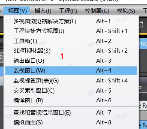 22、 点击视图找到监控窗口,输入变量名称既可对变量进行监控(插槽 10)