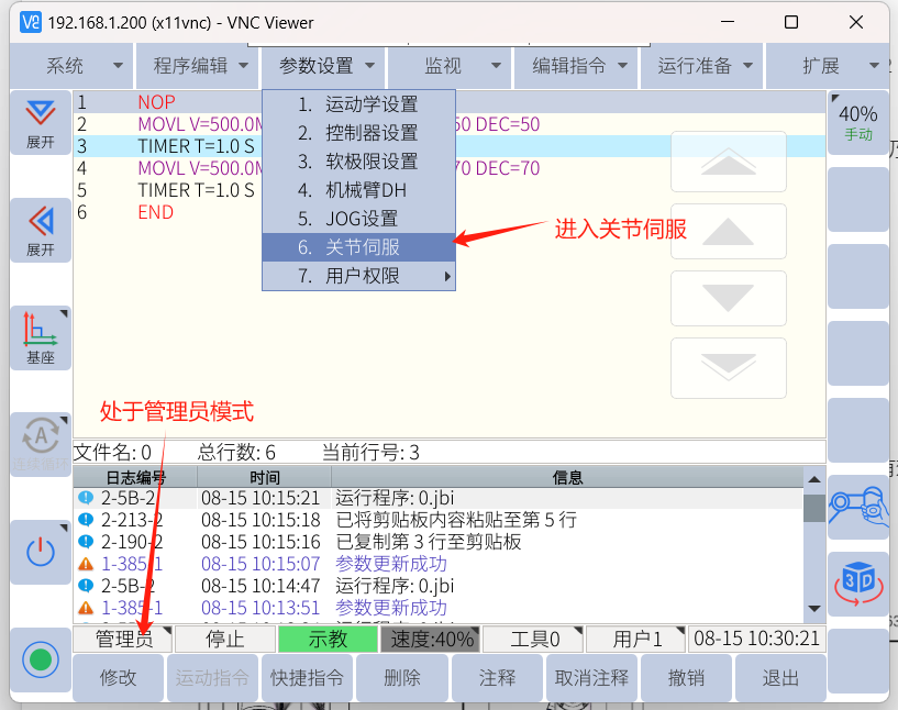 1. 进入关节伺服