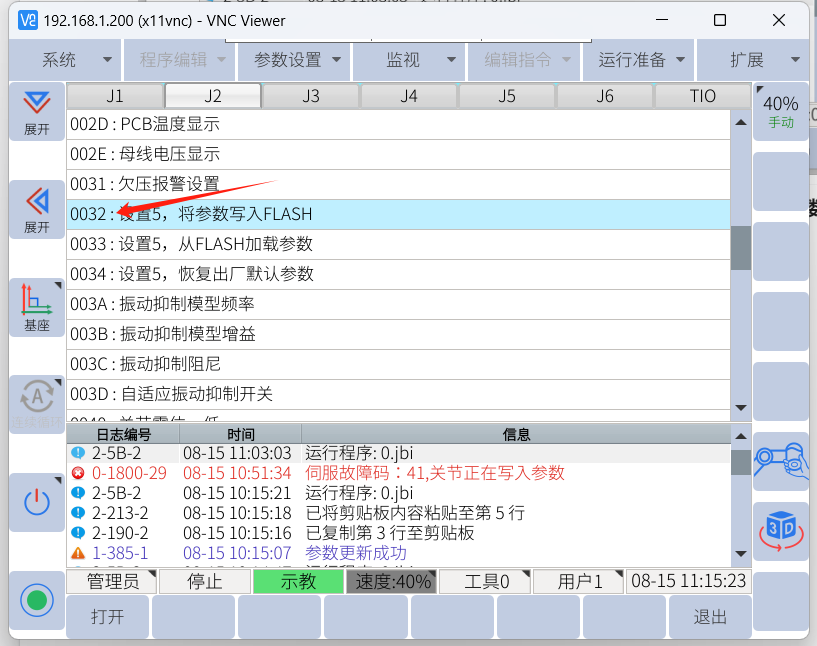 2. 找到003D,一般抖动牵连的关节是J2和J3较多,可仅打开这两个关节的震动抑制功能。