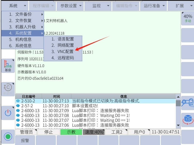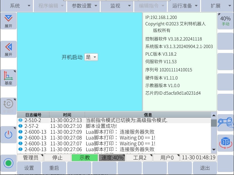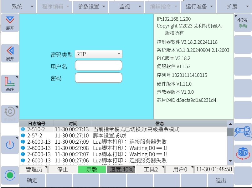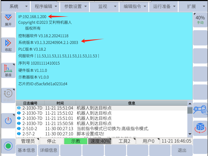 首先查看机器人 ip,并且系统版本后缀为2003