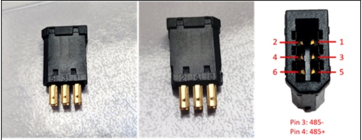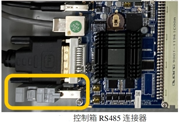 在控制柜接口处AG庄闲可以看到RS485接口,该接口就是AG庄闲的485接口,modbus_rtu时用到该接口,其中针脚3对应485-,针脚4对应485+,如下图。