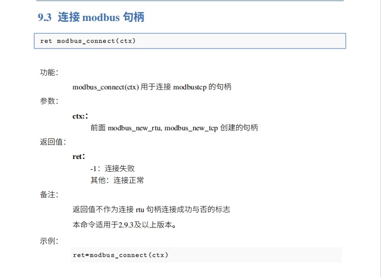 ModBus Master接口常用获取modbus、连接modbus、关闭modbus、设置slave、读取单个线圈、写入单个/多个线圈、读取单个寄存器、写入单个寄存器等指令,本文主要讲解以上指令,具体指令详解如下图所示,其他指令也可参考EC-lua手册ModBus Master章节