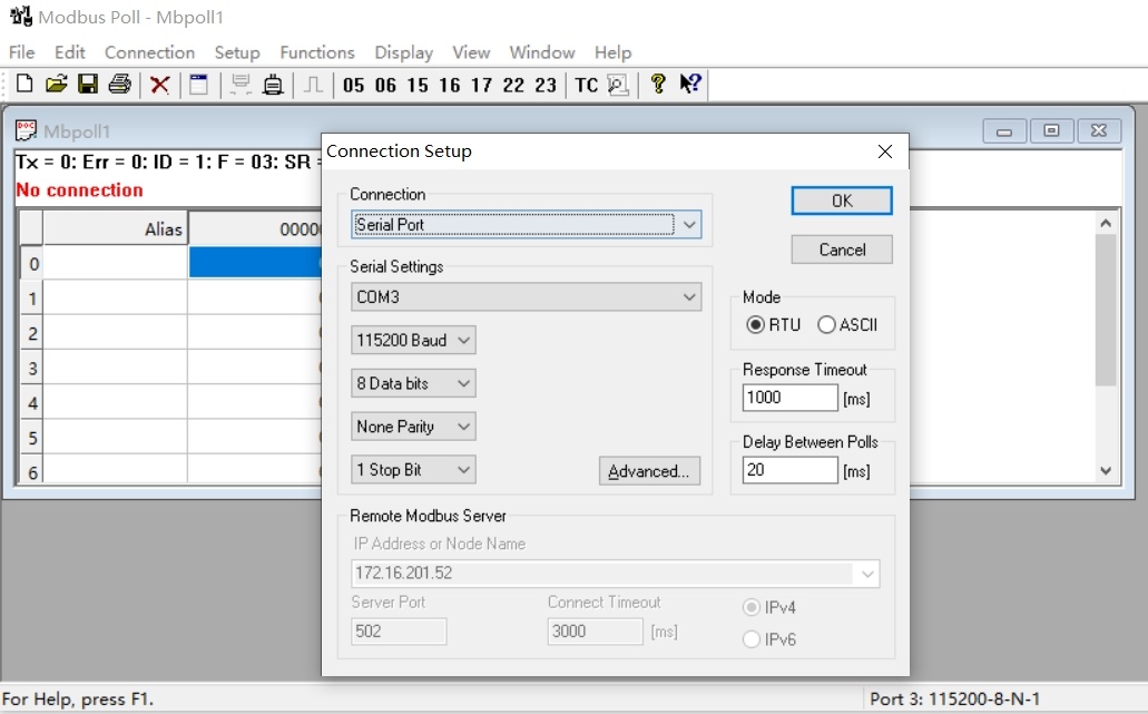 将机器人端485线接好,目前波特率为115200,助手端连接对应设置参数即可,如下图所示