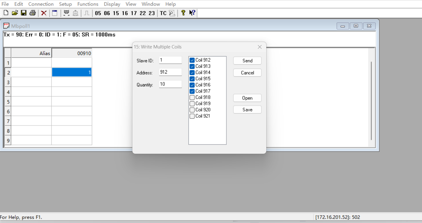 写入单个和多个线圈指令,定义将M530数值写入到线圈530,M531-M534数值分别写入线圈531-534中