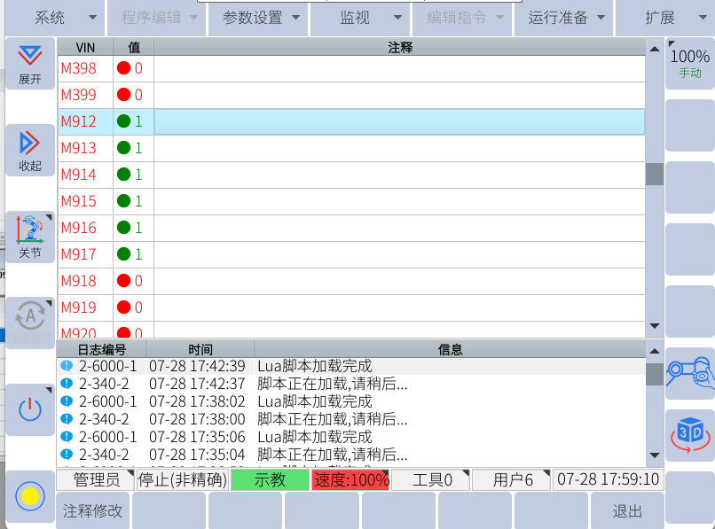 1. M0-M527,M1472-M1535为系统使用,只能读取状态,通过示教器可