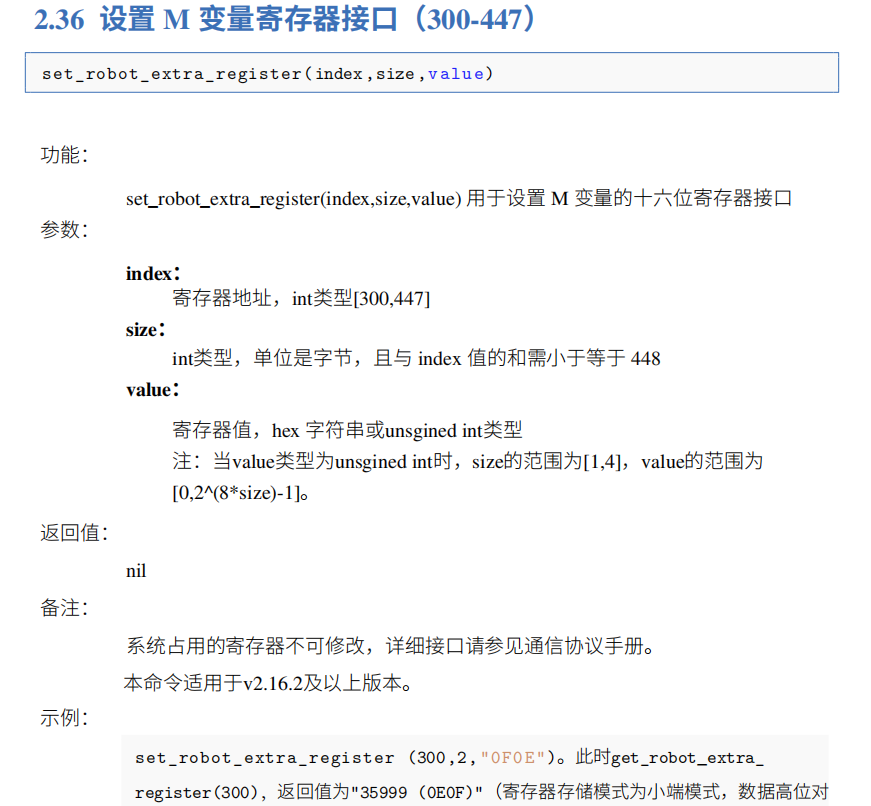 目前Elite机器人支持对虚拟变量M的操作,M为BIT型变量。单个M变量为线圈,多个连续的M变量可为寄存器 。