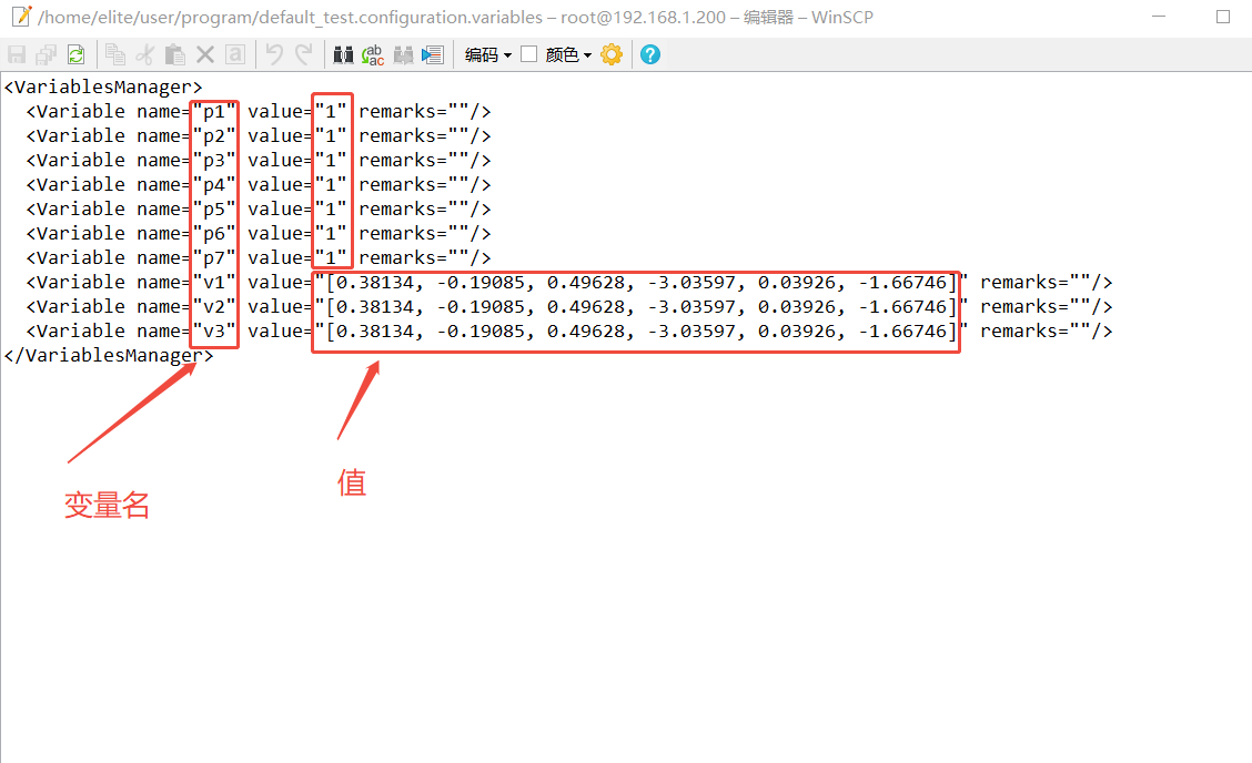 通过传输软件,打开文件路径找到配置全局变量文件default_test.configuration.variables