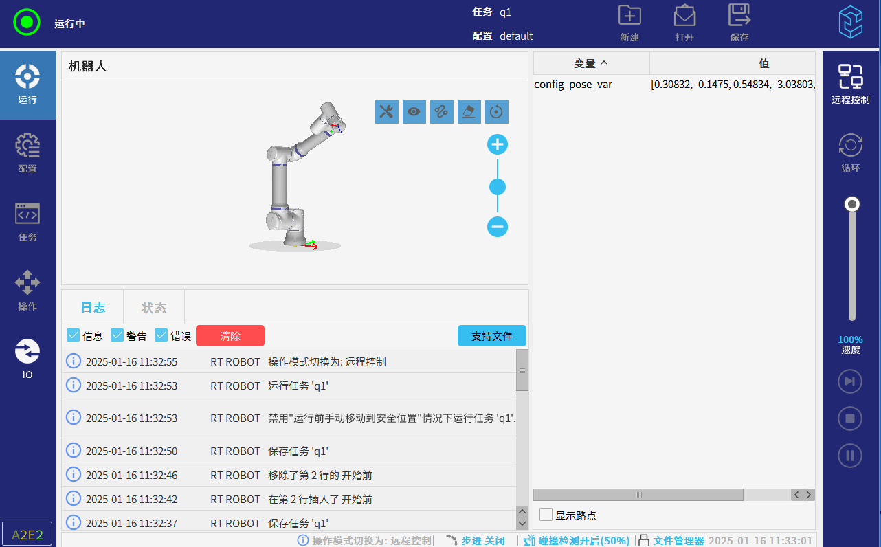 29999端口还可以打开或切换不同的任务和配置,具体使用指令可查询EliRobot Dashboard手册,手册下载可至官网或咨询AG庄闲技术人员技术资料_机器人技术-AG庄闲机器人