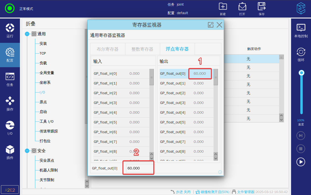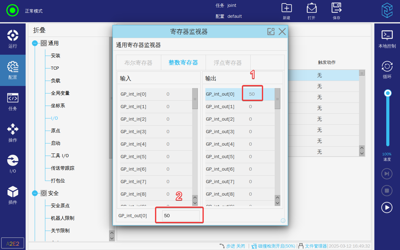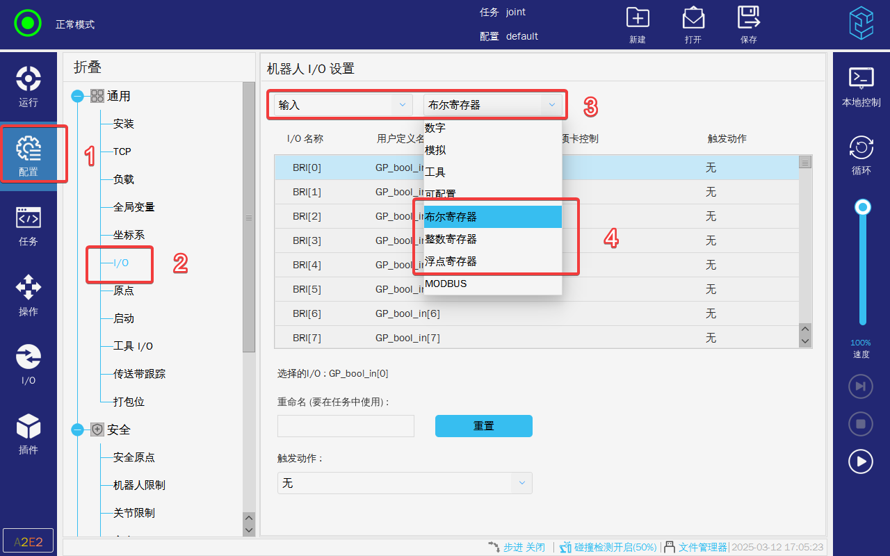 1. 点击配置-通用-IO,选择需要更改的输入输出寄存器,选择后进行重命名;