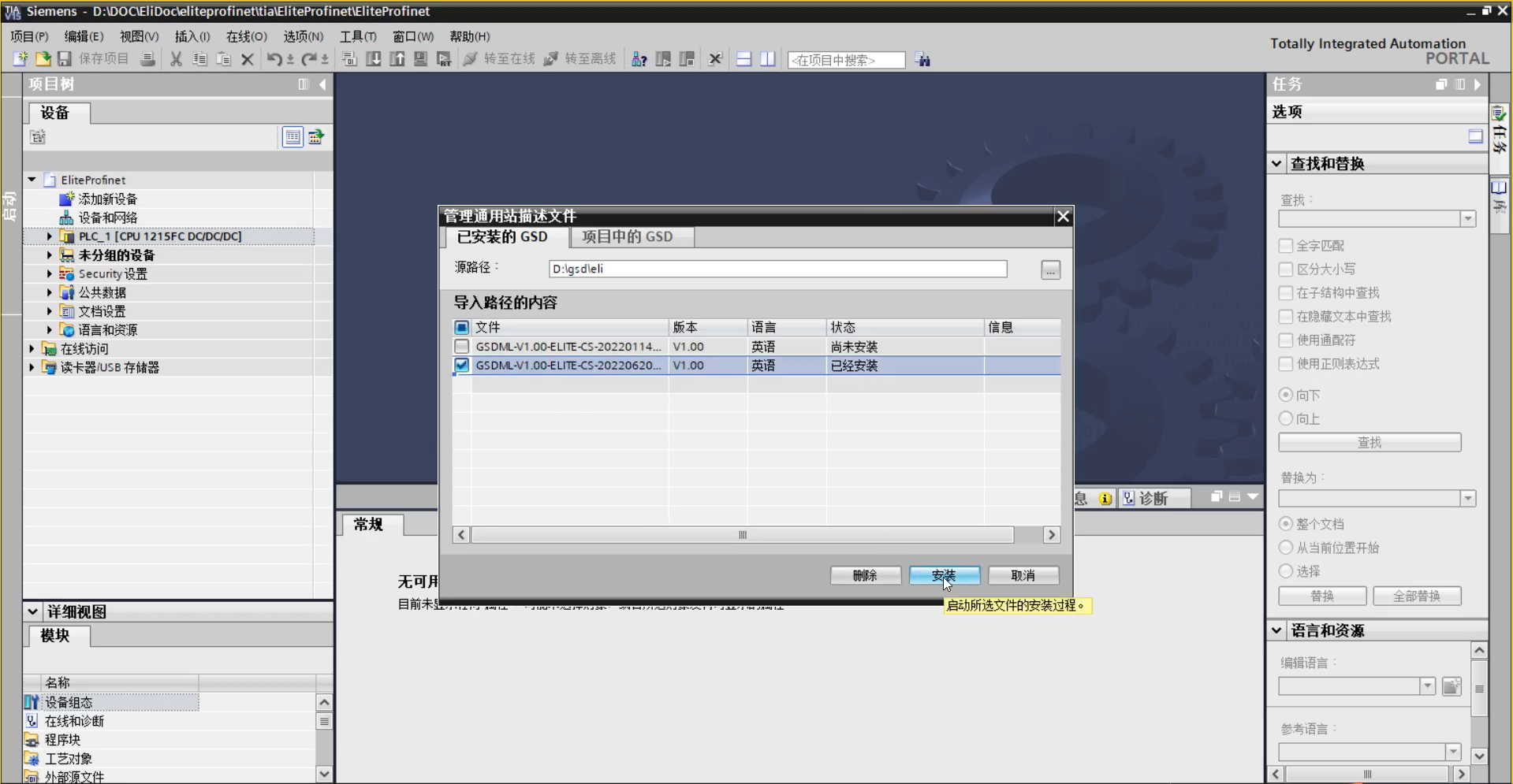 请登录企业微信-微盘查找名称为:GSDML-V1.00-ELITE-CS-20220620.xml 的文件,如果是外部人员请咨询AG庄闲工程师索取。