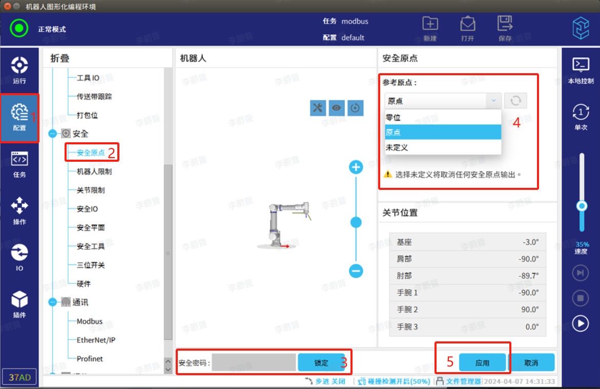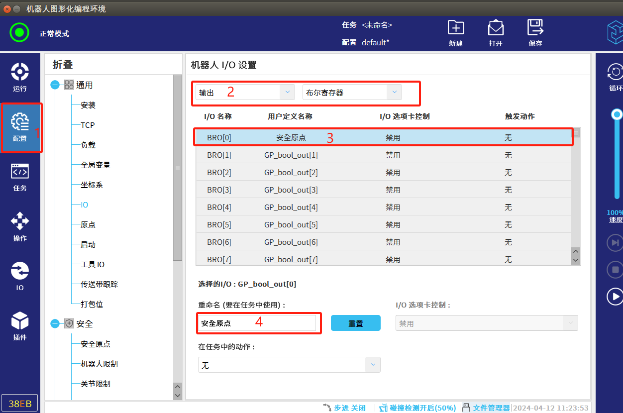 1. IO输出信号配置安全原点信号输出(IO信号接线交互时建议使用)