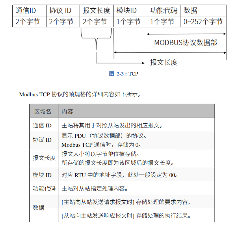 2-2-1. 作为从站并通过以太网连接各种 Modbus TCP 主站设备进行通信,协议的帧