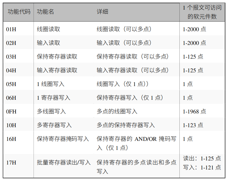 modbus功能码: