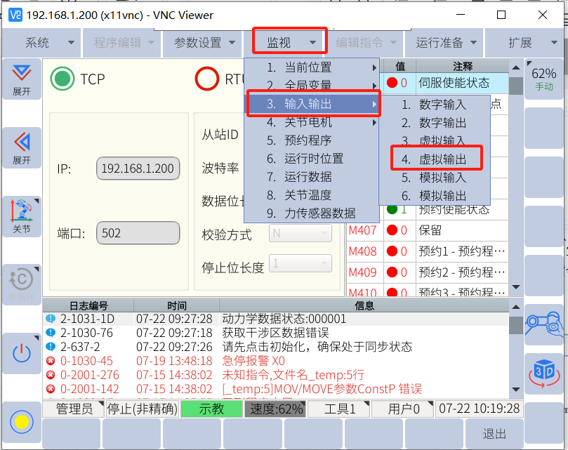 机器人端将虚拟输出M530、M531、M533、M534置为1