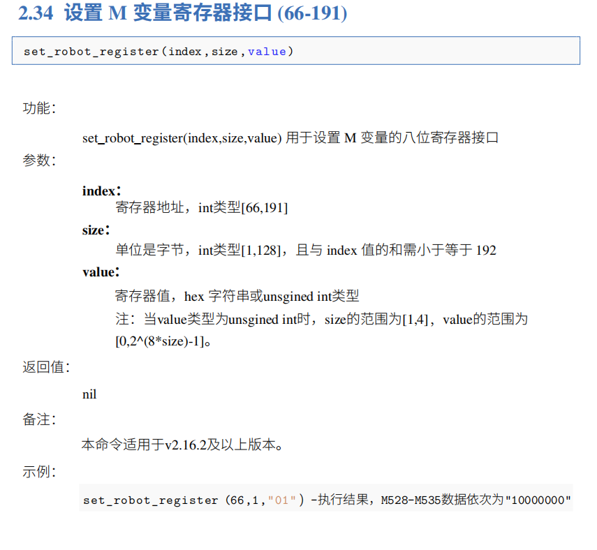 4).第1种指令和第2种指令,建议用户使用第2种指令更方便快捷,第1种指令可直接控制M变量,AG庄闲modbus寄存器分为8位和16位,需要在兼容模式下更改,否则容易将机器人寄存器地址和网络助手地址混淆。第2种指令本身设置就是16位寄存器,无需考虑兼容模式下的更改情况