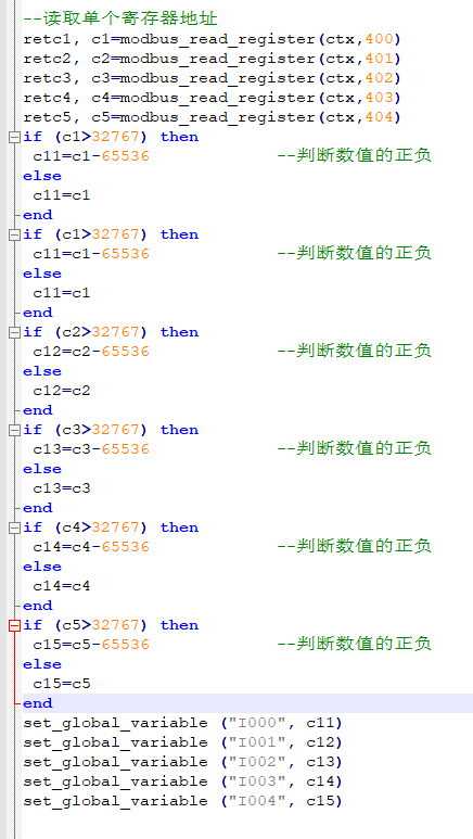 读取400开始的5个寄存器,分别将寄存器数值存入全局变量I000-I004中