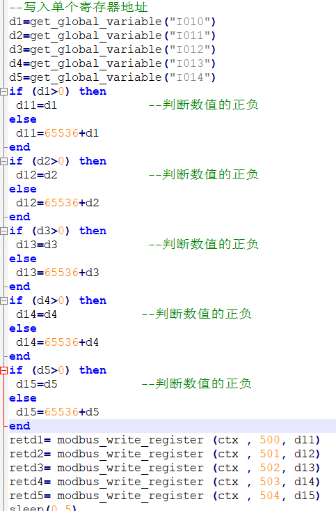 6).机器人通过全局变量I10-I14,将数据写入寄存器320-324,脚本如下所示