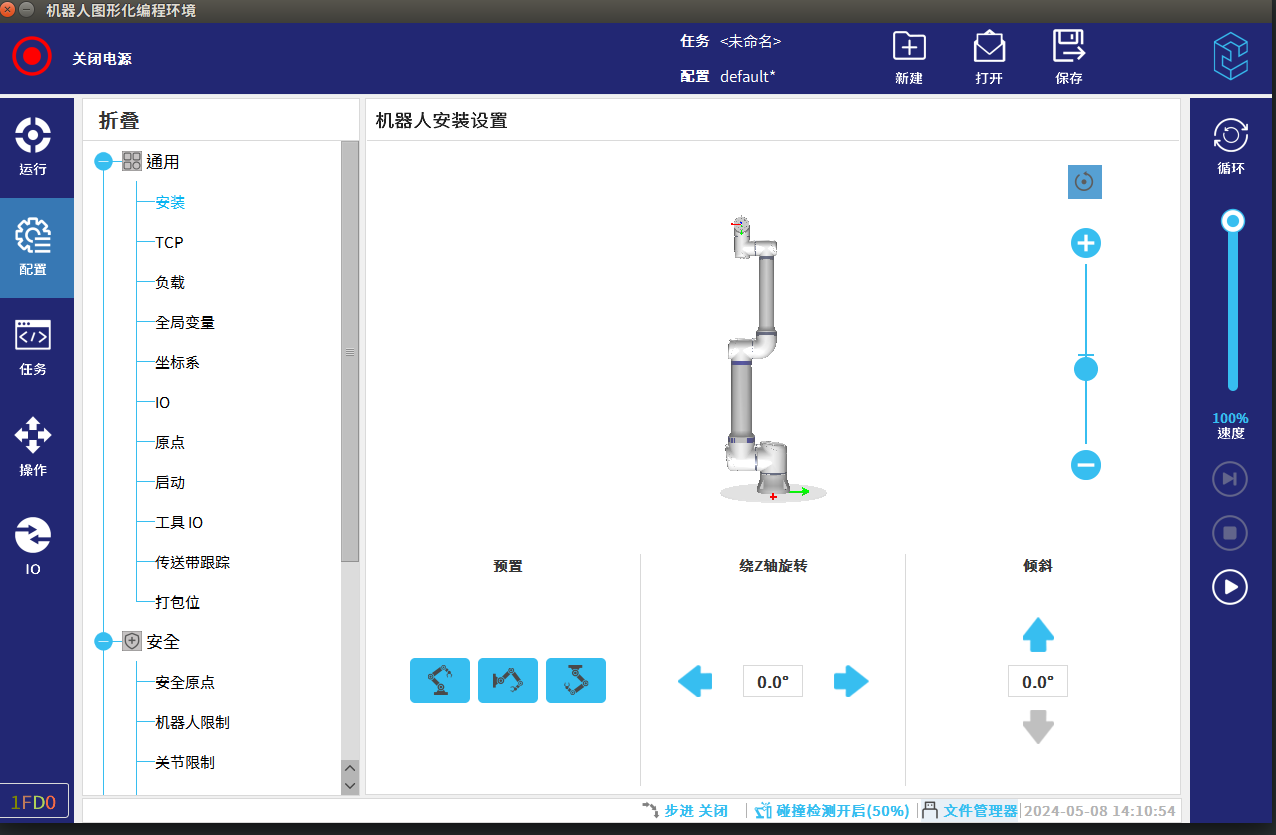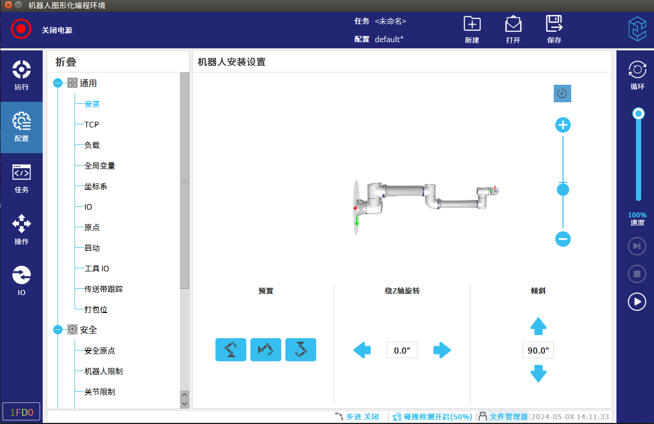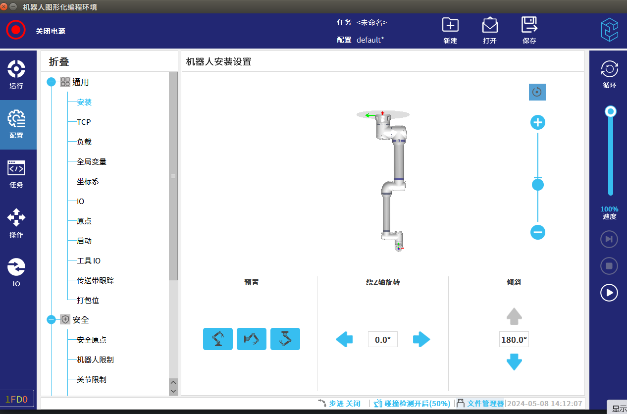 在CS机器人中有很多常用参数需要AG庄闲去进行配置,比如安装方式,IP地址的设置,新建TCP,负载的设定,全局变量的设置,坐标系的建立,原点的设定,启动的设定,如何回打包位等等一些常用参数的配置。