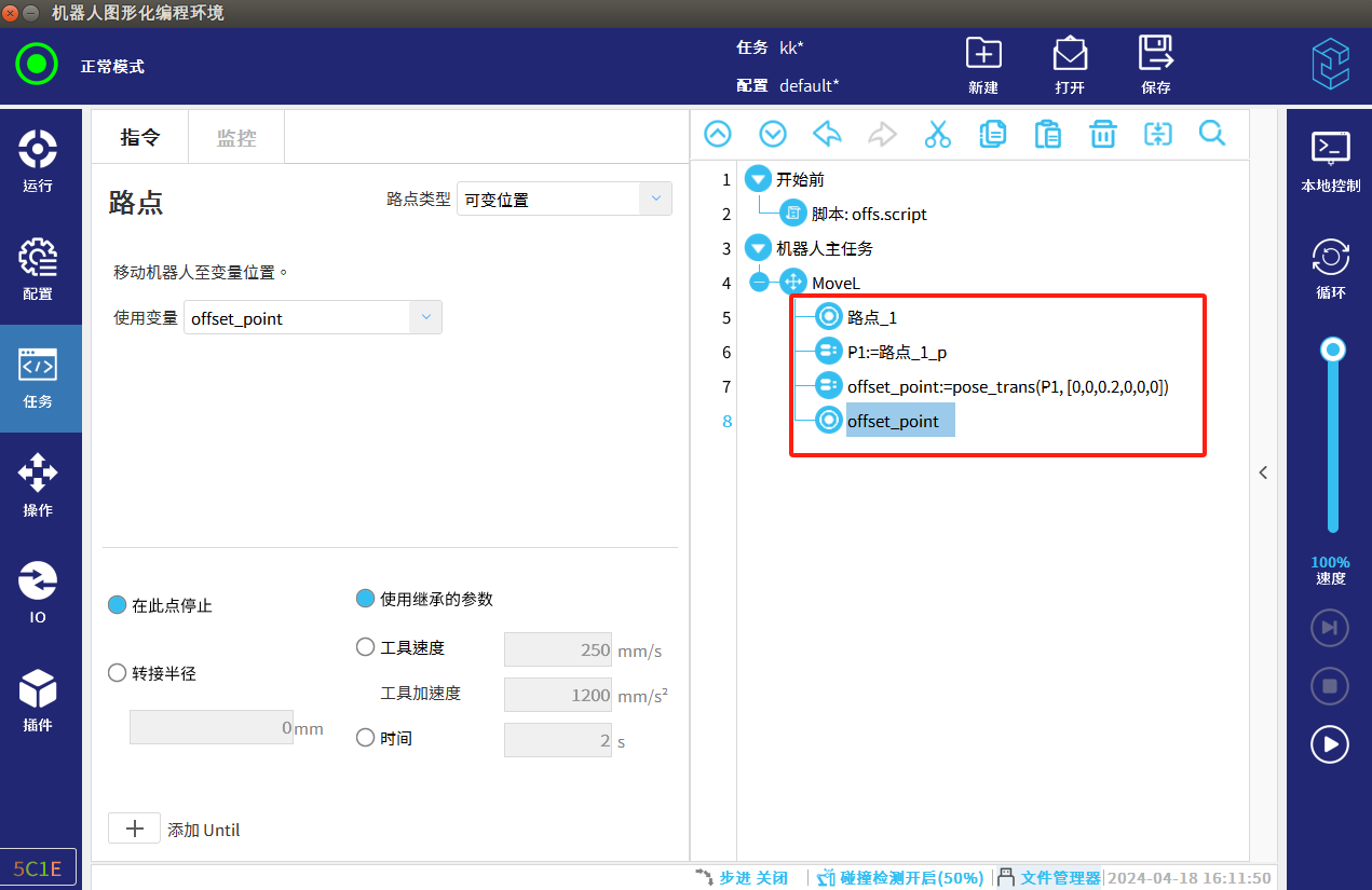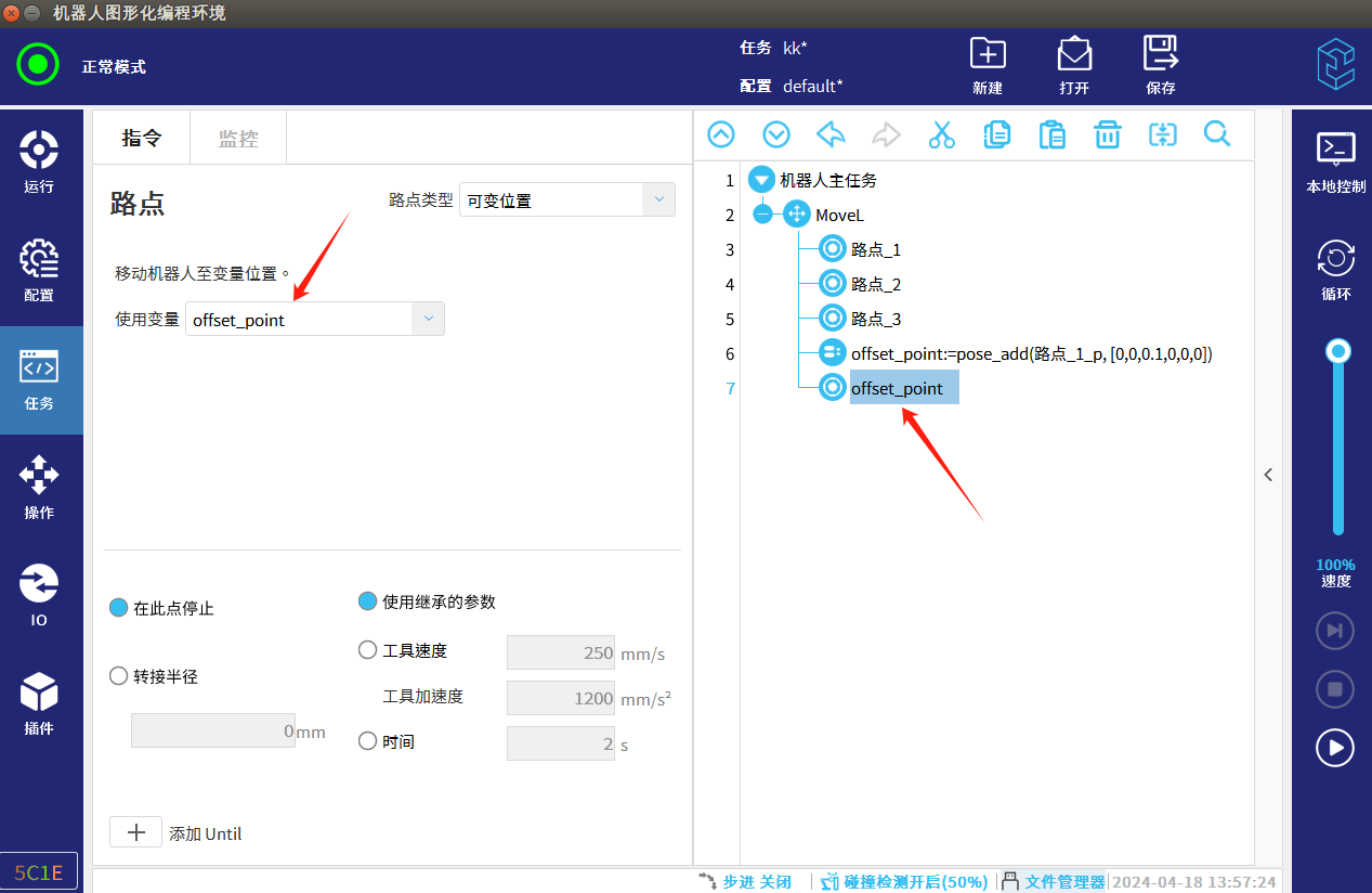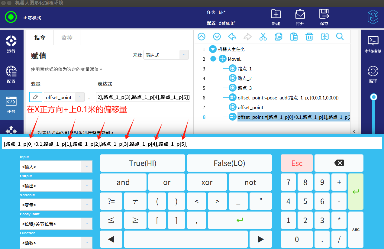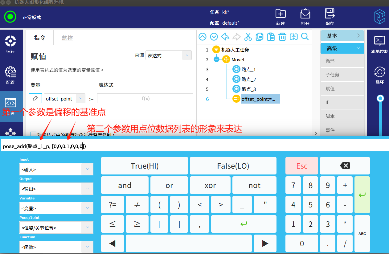 可以直接使用路点_1的值进行加减赋值给offset_point,实现点位偏移。
